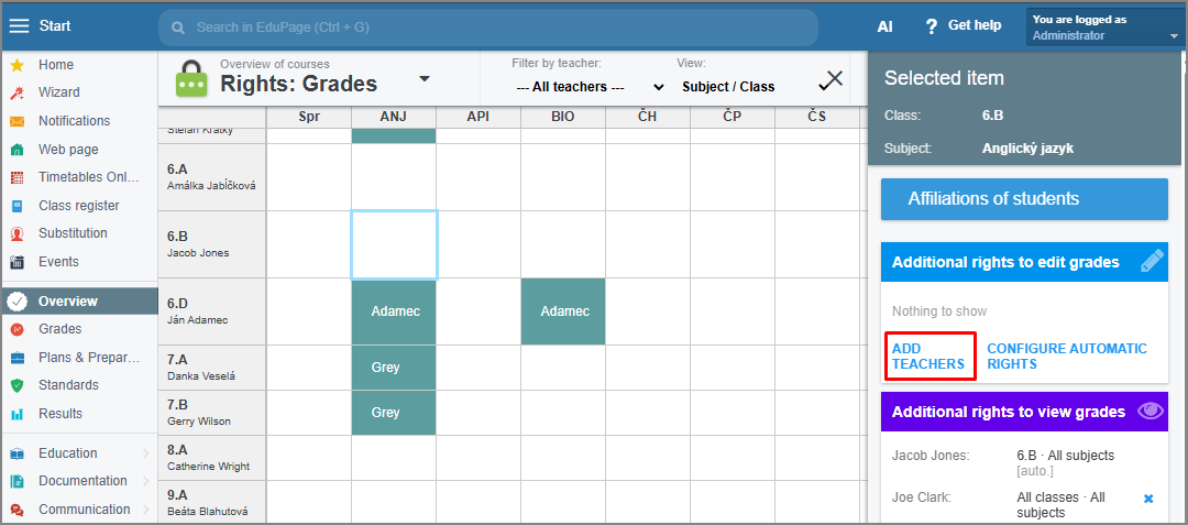 Select the teacher and choose the type of right.
