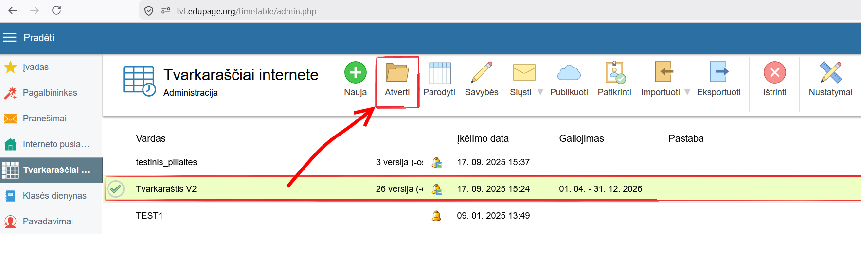 Paskutinį išsaugotą tvarkaraštį (net ir iš „aSc Tvarkaraščių“ programos kompiuterinės versijos) galite lengvai redaguoti internetinėje „Tvarkaraščių“ administravimo skiltyje.