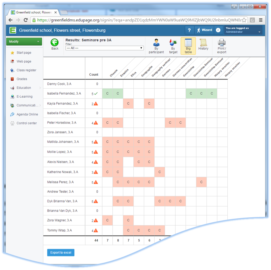 By purchasing aSc TimeTables you get access to 2 years of EduPage. You can use it to track student’s attendance, input curriculum including teaching plans, input student grades and how they progress in various competencies. You can now use EduPage to let your students pick the courses they want to study next year: