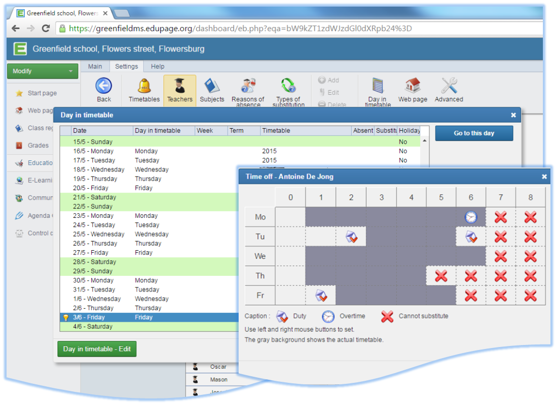 Over the last year, we have gradually improved the substitution online module. It includes more functions, more customization options and added better integration with events from EduPage.