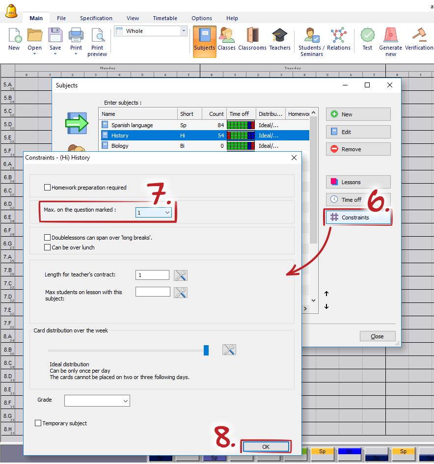 For each subject you can define how many times it is allowed to be on question marked positions.