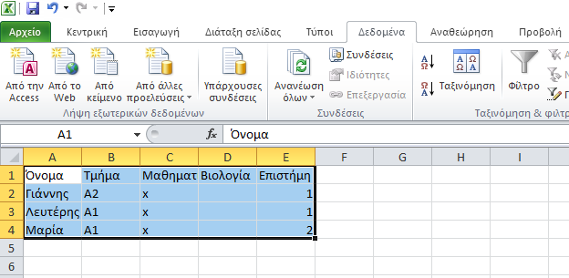 Εισαγωγή επιλογών μαθητών (σεμινάρια) από πρόχειρο (Excel) - Μέθοδος 1