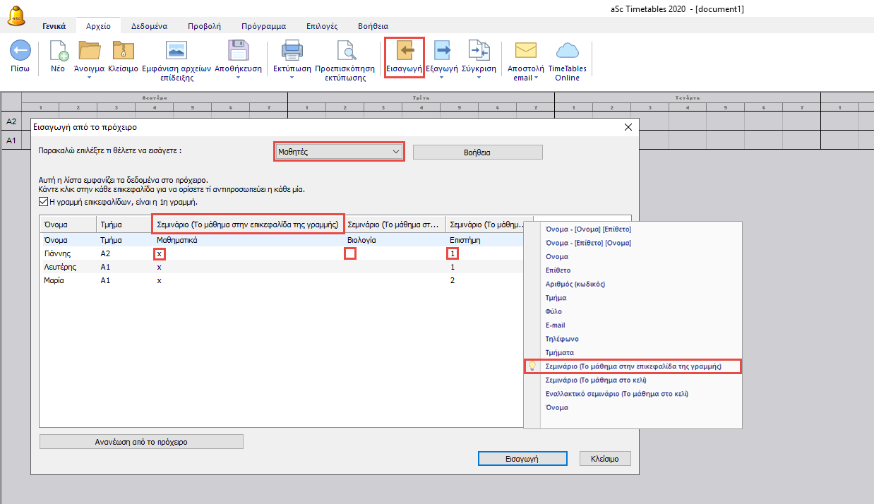 Εισαγωγή επιλογών μαθητών (σεμινάρια) από πρόχειρο (Excel) - Μέθοδος 2
