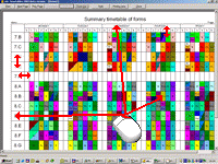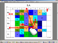Ľavým tlačítkom na myši môžete zmeniť veľkosť časti rozvrhu a pravým tlačítkom myši na príslušnej časti rozvrhu prispôsobiť, čo sa má tlačiť (učiteľ, predmet, trieda...), ako (fonty, atď...) a kde.