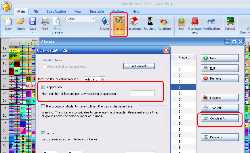 Možete odrediti najveći broj predmeta koji mogu biti na rasporedu u jednom danu.
