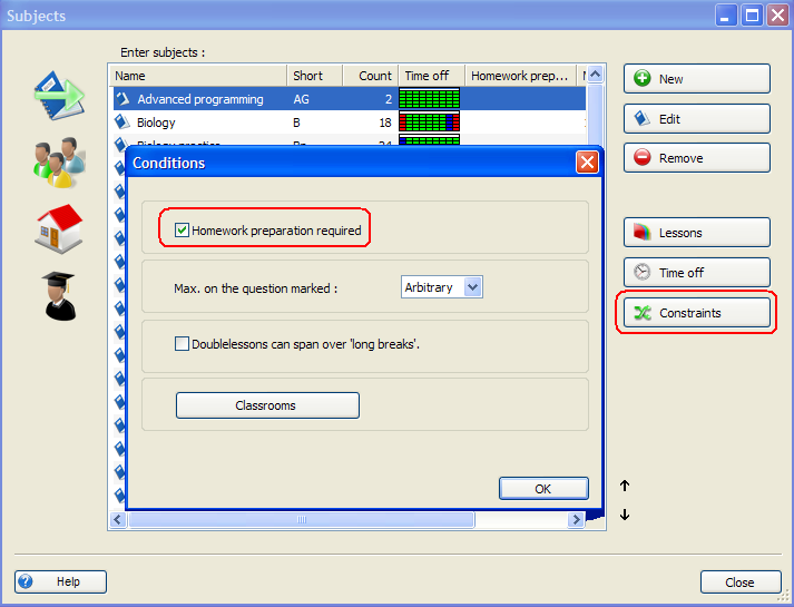 בעת הוספת מקצוע לימוד חדש או עריכת מקצוע לימוד קיים , אתה יכול להשתמש בתיבת הסימון על מנת להדגיש את מקצועות הלימוד הדורשים הכנה.