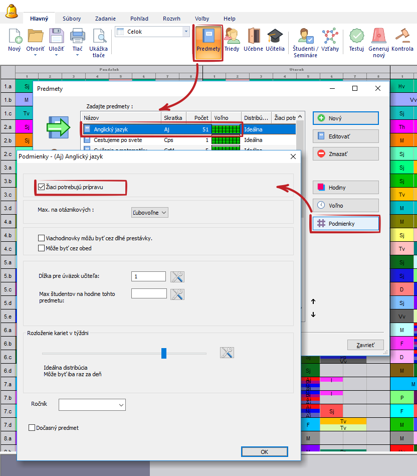 Potom môžete určiť maximálny počet týchto predmetov, ktoré môžu byť v jeden deň. Môžete to určiť individuálne pre každú triedu.