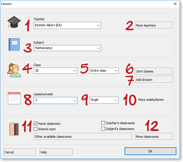 Lesson is the most important item for the generation. By this expression ASC Timetables understands: