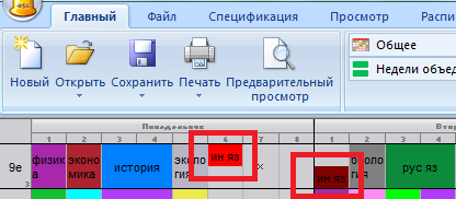 По умолчанию (без дополнительных установок пользователя) программа может создать и такое расписание, где одна половина класса (группа) имеет английский язык в понедельник как 6-ой урок, в то время как другая половина идет домой после 5-ого урока. На следующий день группы меняются: