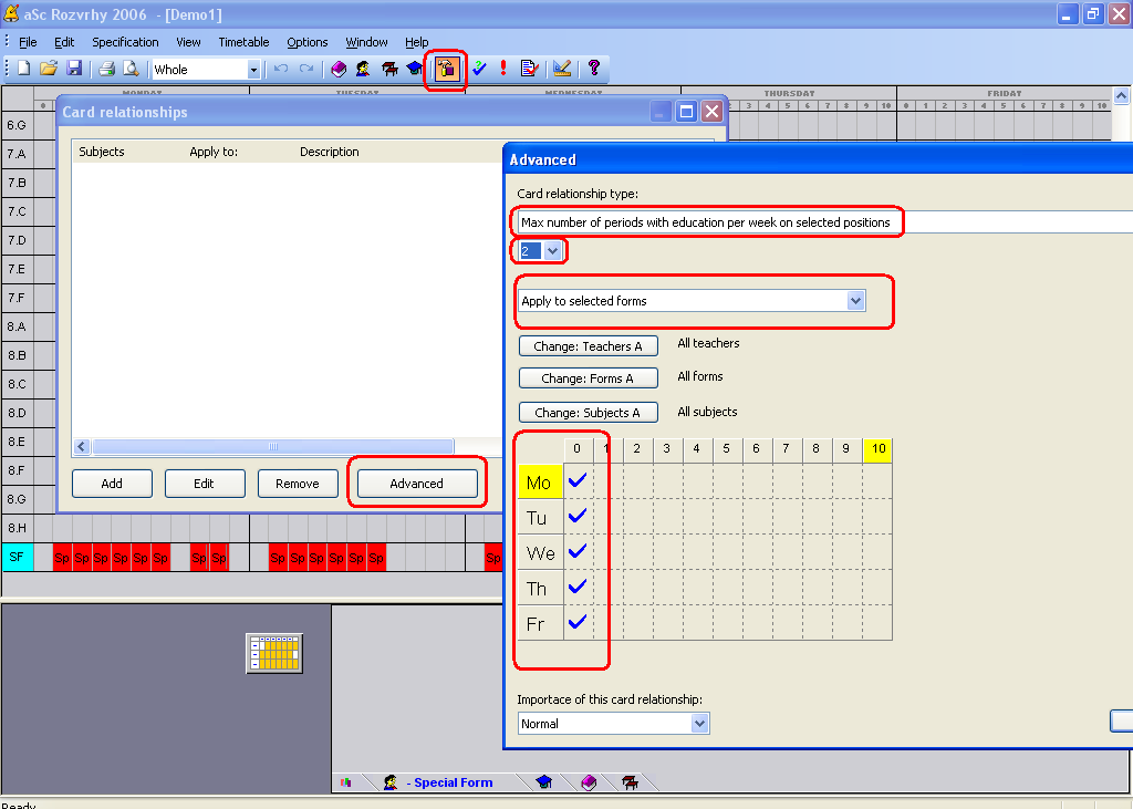 - taký istý vzťah medzi kartičkami môžete použiť aj pre učiteľov, iba v comboboxe zmeníte možnosť 'Aplikuj na...'.