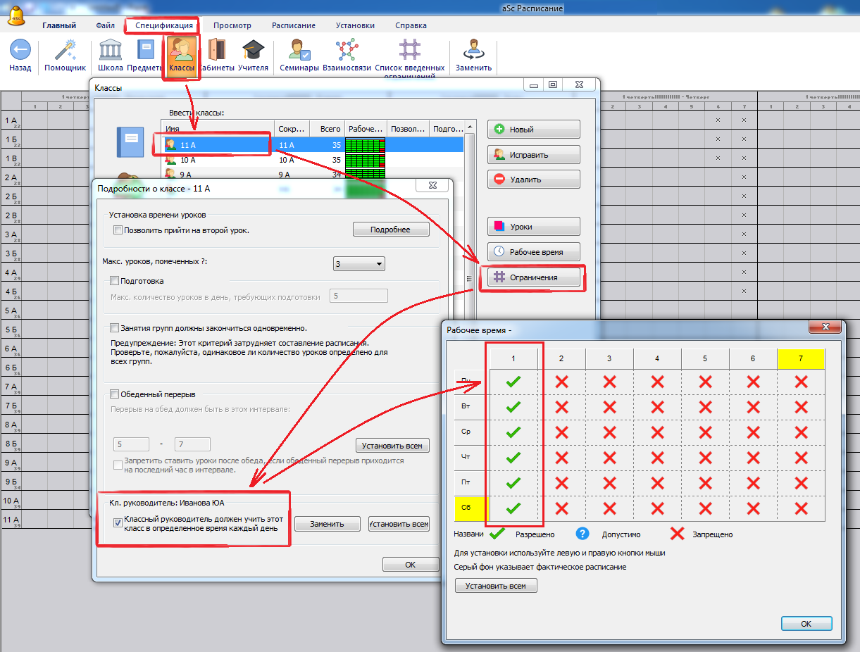 Однако, если он преподает много предметов, или имеет спаренные и одиночные уроки, тогда лучше не закреплять, а определить так, как показано на этой картинке: