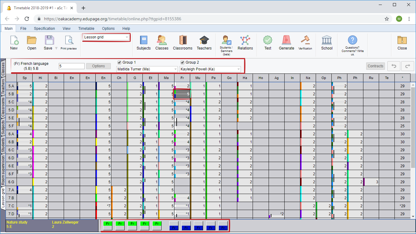 The lesson grid shows you all the lessons in your school on single screen. You can also add or modify the lessons from here: