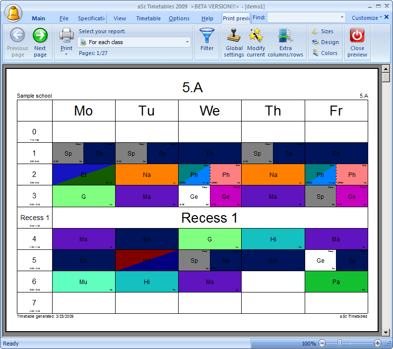 If you have longer breaks that shall be indicated in the timetable printouts, you can add them using button add breaks: