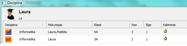 Du mokytojai moko kartu, bet tik 3 pamokas per savaitę, o šių pamokų yra 5