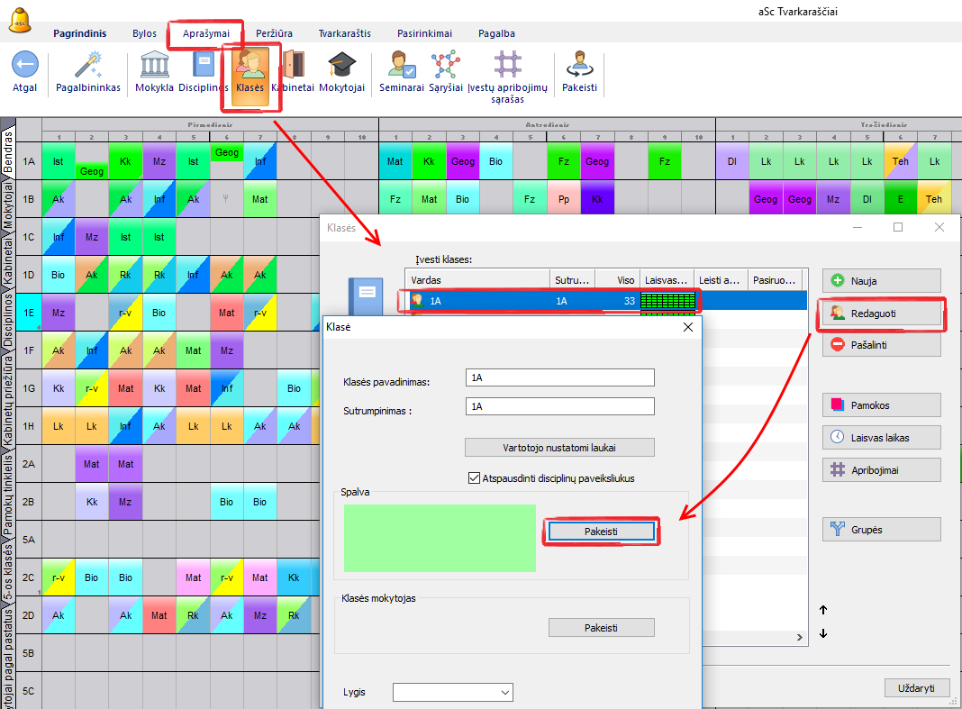 Kaip pakeisti klasės spalvą?