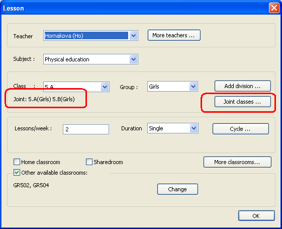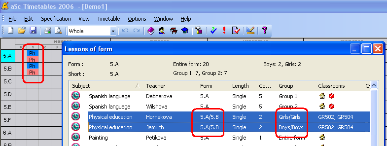 إذا كان في المدرسة الكثير من الأولاد, تنشئ مجموعتين من الأولاد. إذا لدينا 3 مدرسين واحد للأولاد في الفصل 5أ . والثاني للأولاد في الفصل 5ب , والمدرس الثالث ينشئ مجموعة مكونة من البنات في الفصل 5أ و 5ب :