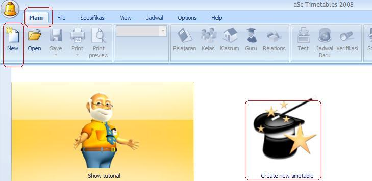 1. Main New: Pilihan ini memberikan anda jadwal kosong. Anda dapat memasukan data pelajaran, kelas guru klasrum dan kontrak.