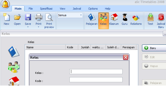 Similar to the previous step, here you can create, edit, or delete a class. You can enter other data for a class: Lessons..., Divisions... and Time off.