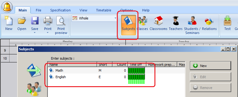 ברגע שיש לך את נושאי הלימוד יש לך שתי אפשרויות כיצד להזין את בחירות התלמיד. האפשרות הראשונה היתה לבצע ישירות עריכה בתיבת השיח בה השתמשנו ליצירת תלמיד חדש. לחץ לחיצה כפולה על כל שורה ותקבל תיבת שיח בה אתה יכול להוסיף/להסיר תלמיד מהנושא.