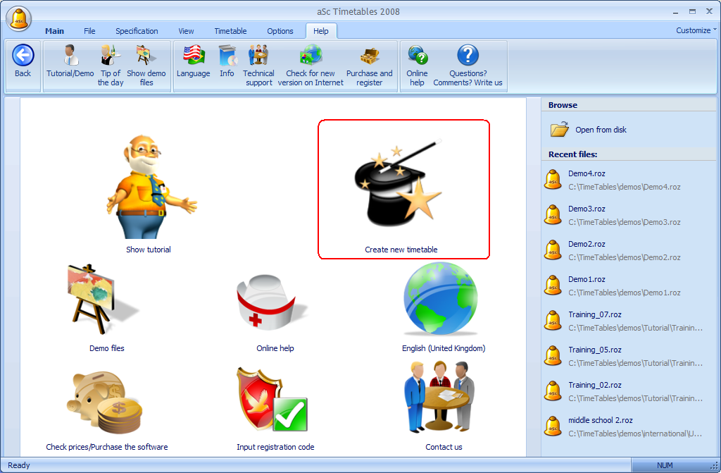 Existing timetable таны ажиллаж байсан сүүлийн 8 файлаас сонгож нээх боломжийг олгоно. Хэрэв уг жагсаалтанд таны ажиллаж байсан хуучин файл харагдахгүй бол Browse товч дээр дарж уг файлаа компьютераас хайж гаргана.