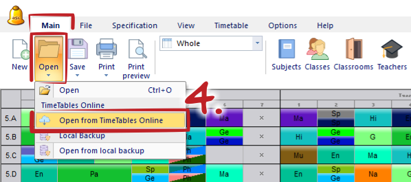 Prípadne, môžete nájsť rovnakú funkciu v ponuke "Otvoriť" - "Otvoriť z Rozvrhy Online"