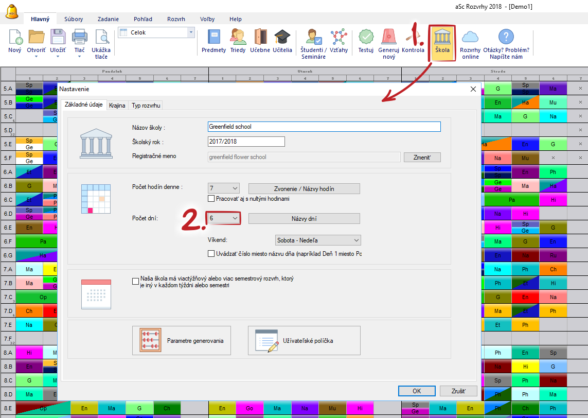 Môžete nastaviť 6 dní vyučovania v ponuke "Škola - Počet dní"