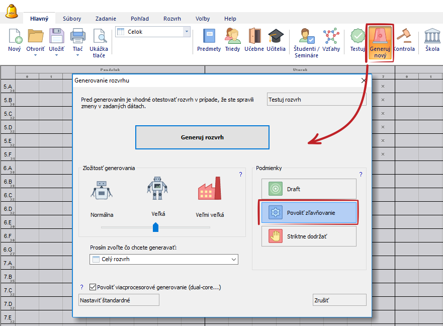 2. Môže vám to taktiž pomôcť nájsť finálny rozvrh s iba niektorými podmienkami poľavenými.