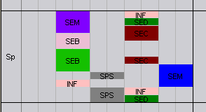 Vo väčšine prípadov je hodina zobrazená ako jeden vodorovný prúžok, ale v niektorých prípadoch je zobrazená ako viac prúžkov, napríklad na obrázku je hodina SPS zobrazená ako dva prúžky. Tieto prúžky nie sú náhodné, sú rozmiestnené tak, aby bolo na pohľad jasné, ktoré seminárové hodiny môžu ísť dokopy. Ak prúžky z dvoch seminárov do seba "zapadajú", znamená to že hodiny môžu ísť spolu na jednu pozíciu, ak nezapadajú, znamená to že je aspoň jeden žiak, ktorý navšetvuje oba semináre a teda tieto semináre nemôže bežať naraz. Napríklad na obrázku vidno, že SPS je možné presunúť na predchádzajúcu vyučovaciu hodinu, ale nie na nasledujúcu, pretože jej zavadzajú hodiny INF a SED.