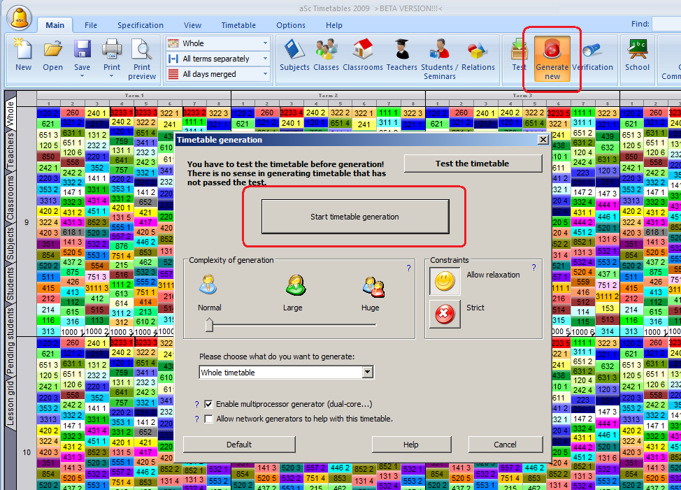 Note you can use whatever option in any phase of the generation. Even if you don’t have teachers assigned to some courses, or not all students in, you can generate to see whats going on in your timetable.
