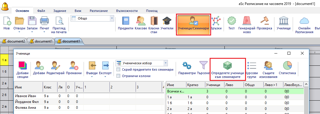Обикновената версия само определя учениците преди генерирането. След това не може да променя групите.