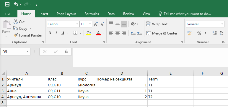 - ако вашето разписание вече съдържа учители, курсове, класове и др., внесените данни ще се опитат да намерят сходни с тях. Ако съответният обект не е намерен, ще бъде създаден чрез въвеждане.