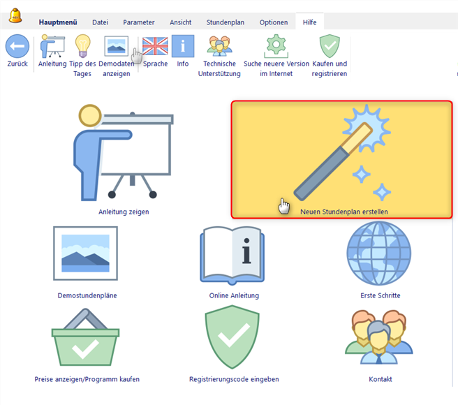 Der Assistent hilft Ihnen bei der Erstellung eines neuen Stundenplans und öffnet Dialogfenster für die Dateneingabe.
