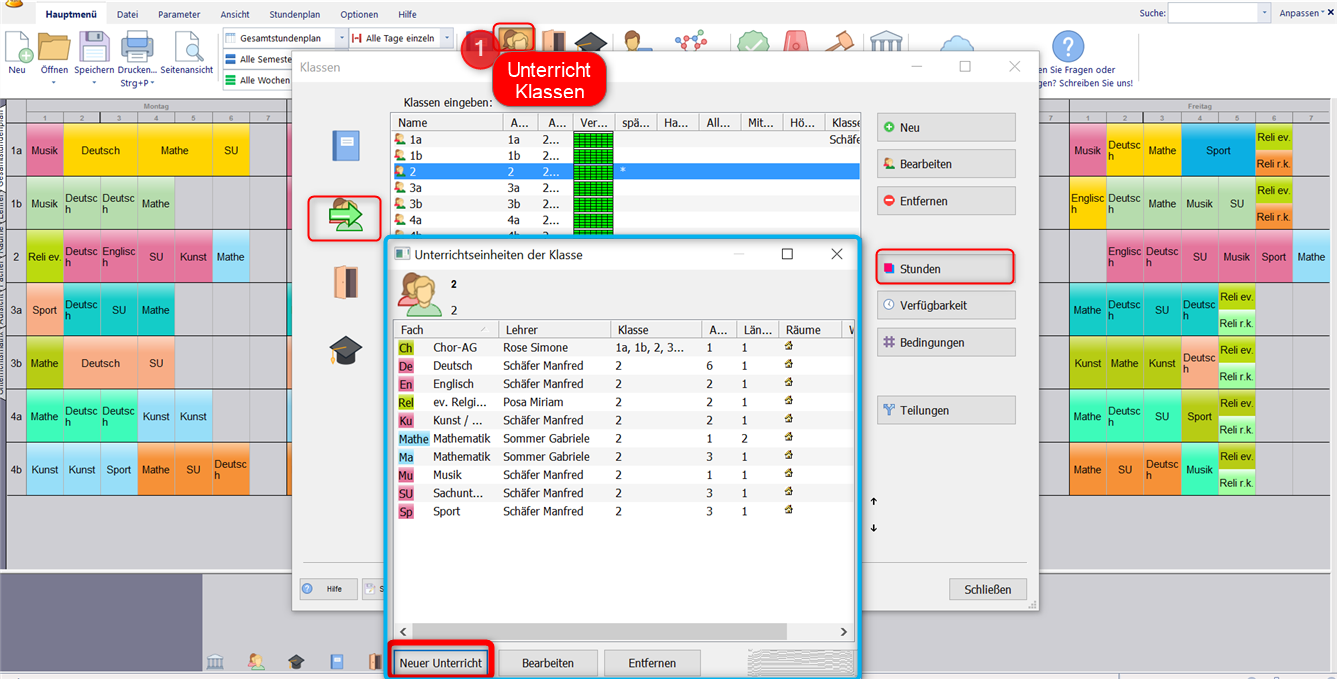 Hinweis: Nutzen Sie zur Planung der Unterrichtsverteilung auch die Funktion Unterrichtsmatrix: Die Unterrichtsmatrix - Ansicht