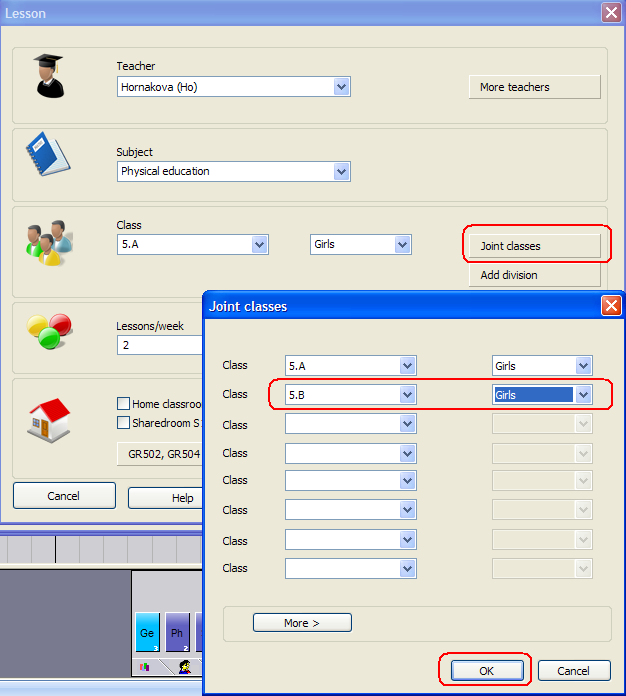 Vorsicht: Dialog in Stunden zeigt nur die Stunden für Klasse 5A. Also die Stunde für Jungen aus 5B is nicht auf dieser Abbildung.