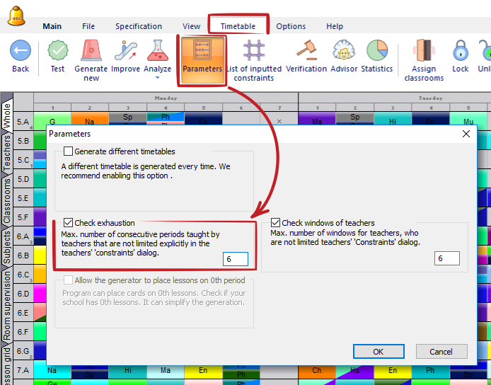 Wenn Sie solche Begrenzung nicht brauchen und Ihre Lehrer können oder müssen mehrere Stunden nacheinander unterrichten, dann schalten Sie diese Möglichkeit einfach aus.