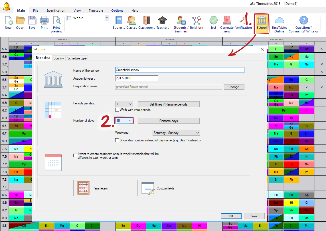Por favor, fíjese que en este caso tiene que duplicar las lecciones de profesores. Por ejemplo si el profesor enseña 2 lecciones a la semana, entonces en el horario de 10 días enseñará 4 lecciones en 10 días.