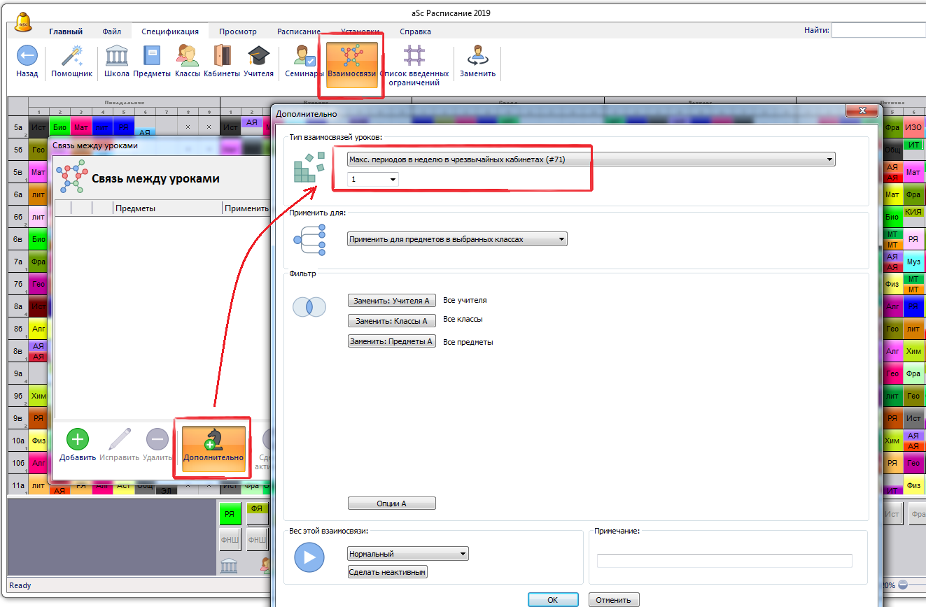 3. Добавлены две новые взаимосвязи, которые позволяют более точно указать использование кабинетов в вашем расписании: