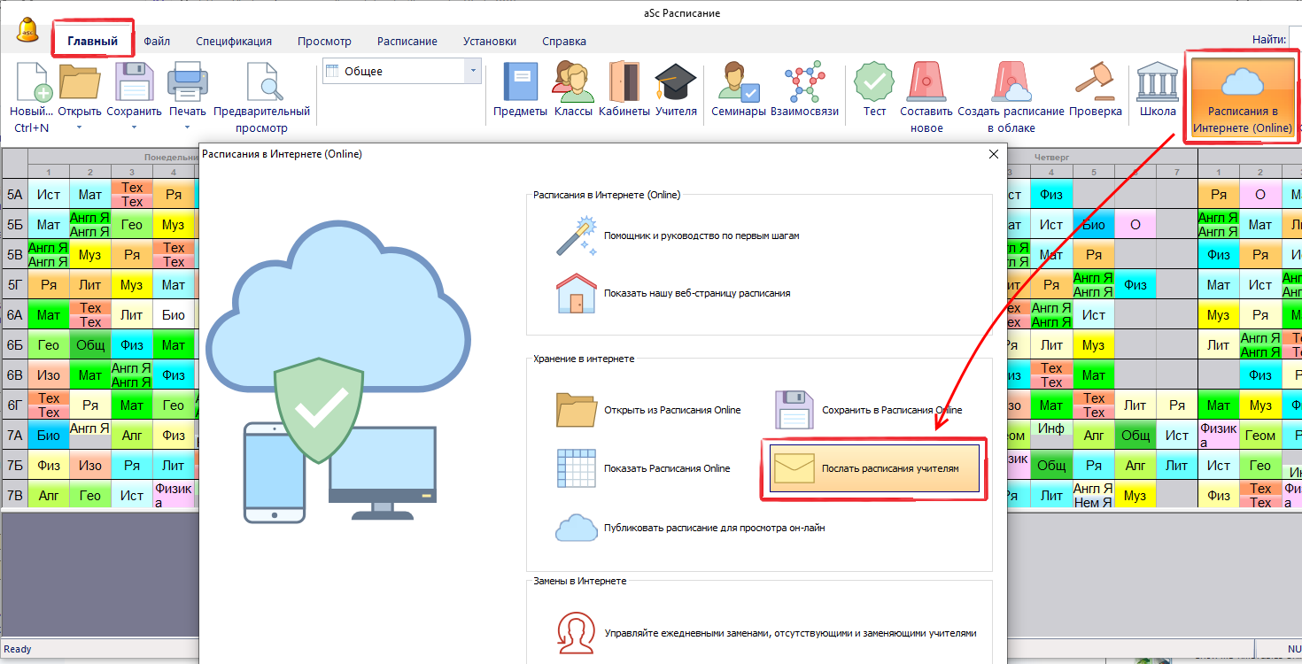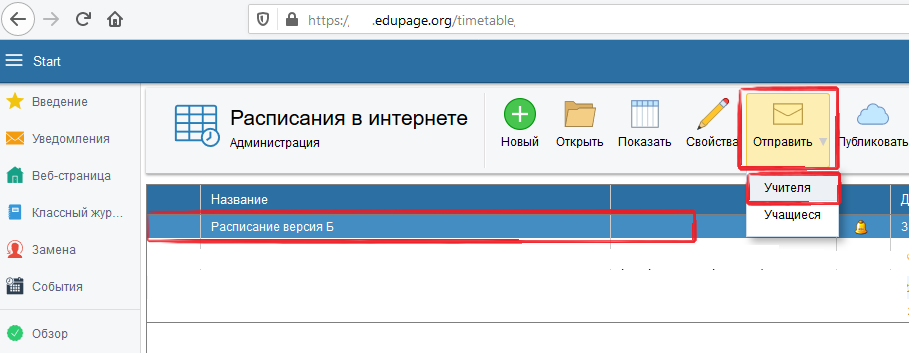 Прежде всего, необходимо сохранить расписание на сервер Интернета.