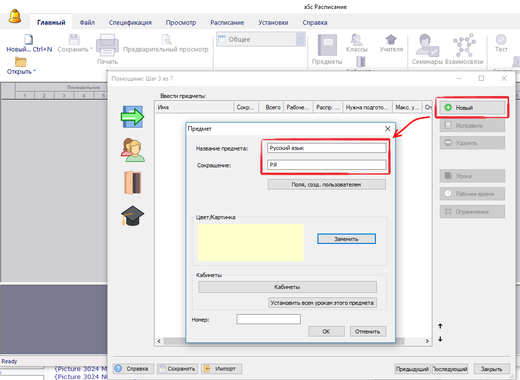 В этом шаге введите предметы, которым ученики будут обучаться в этом году: