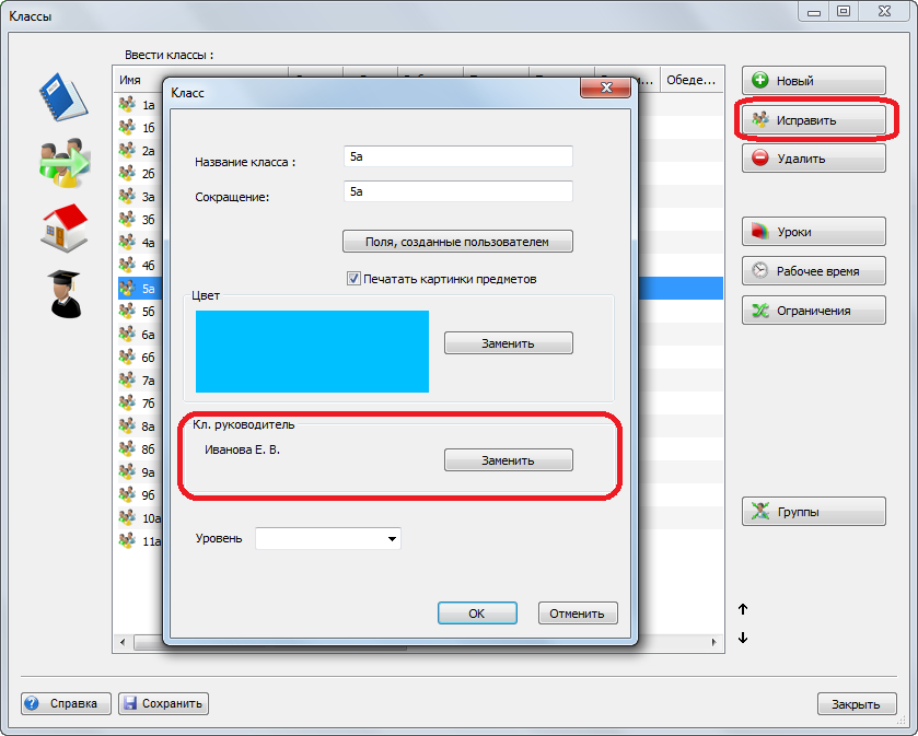 Как присвоить классу классного руководителья?