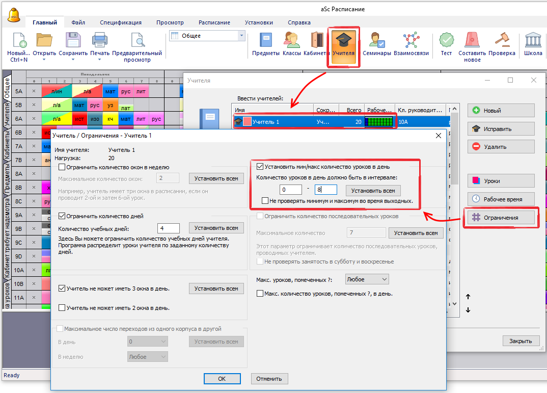 - Постарайтесь не задавать нереалистичных требований. Очень рекомендуется вводить эти ограничения позже, когда уже есть вариант расписания, и Вы хотите его усовершенствовать. См.: Советы хорошей практики составления расписаний