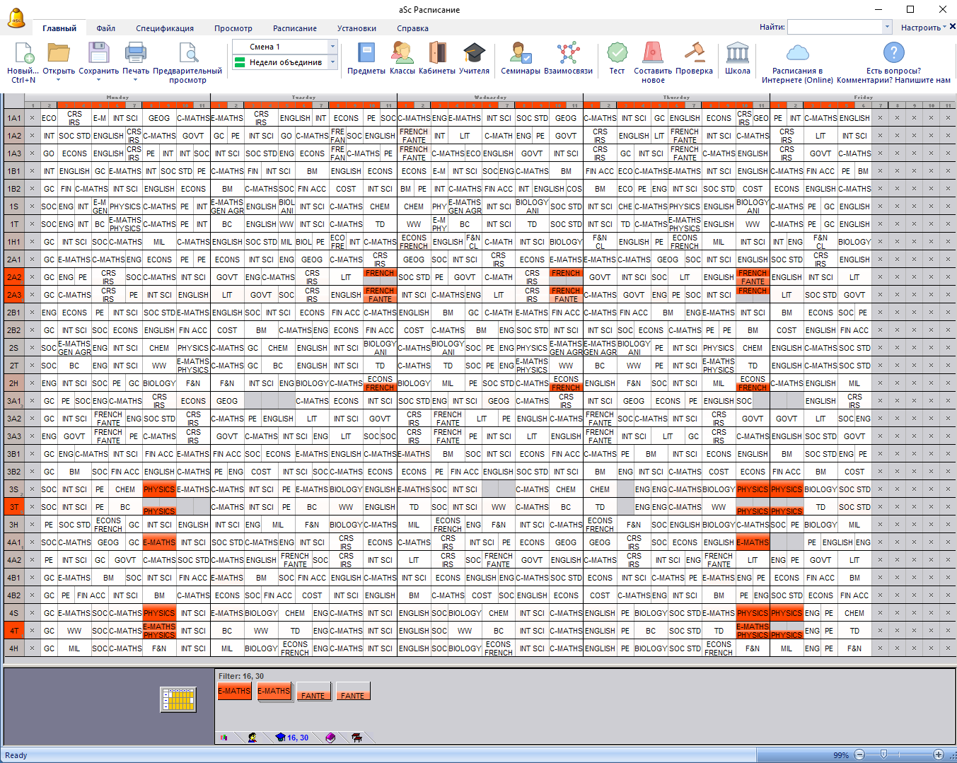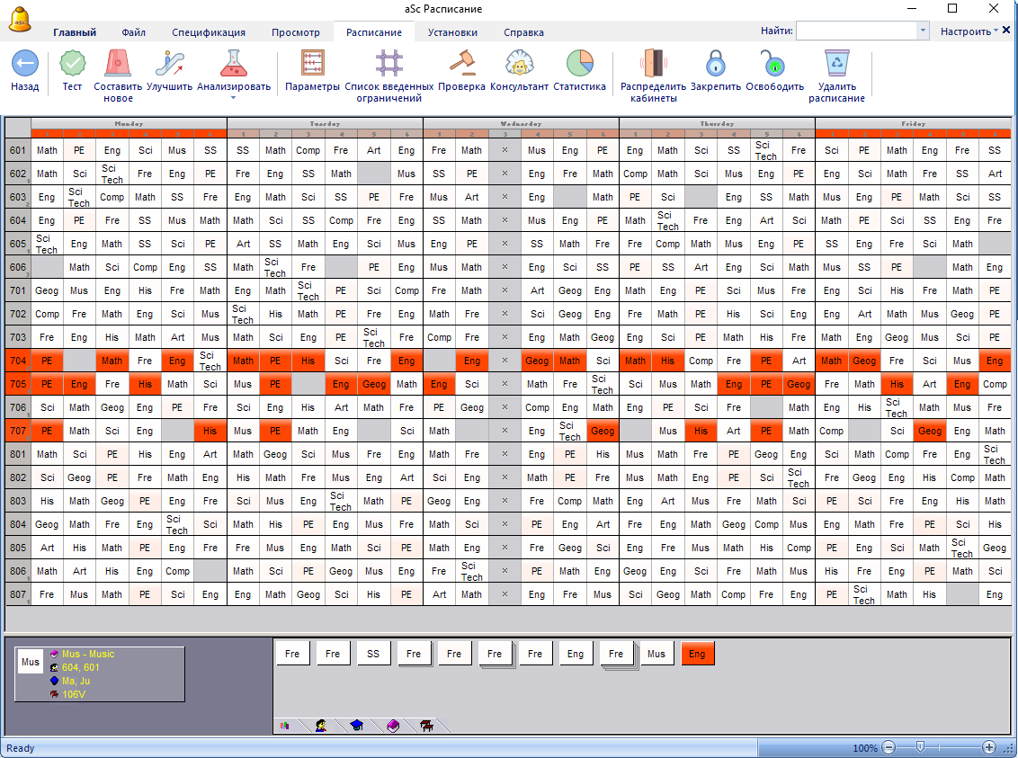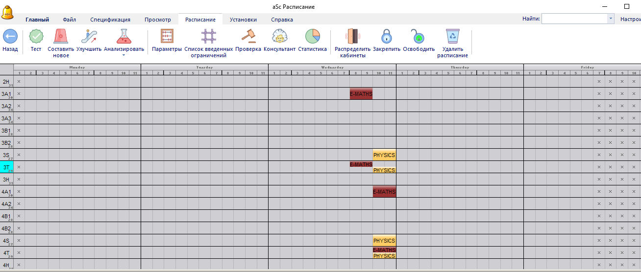 Запустив "Расписание / Анализировать по составлению", программа показала эти карточки в красном: