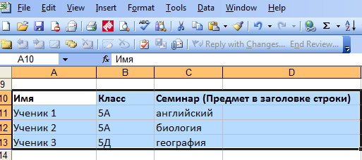 Импортировать выборы учеников (семинары) из буфера обмена (Excel) - Метод 1