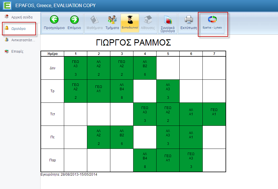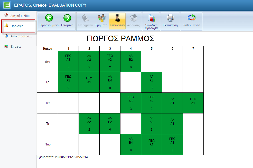 Από την στιγμή που ο διαχειριστής της εφαρμογής έχει αποστείλει το ωρολόγιο στον εκπαιδευτικό ή το έχει δημοσιεύσει σαν το επίσημο ωρολόγιο πρόγραμμα του σχολείου, κάθε εκπαιδευτικός μπορεί να έχει πρόσβαση