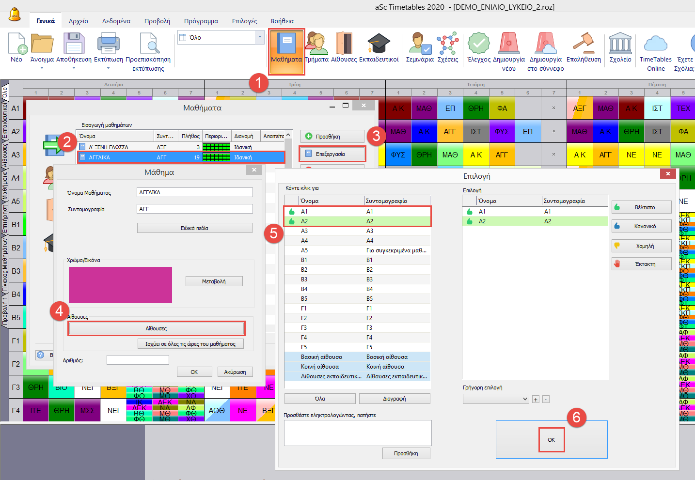 Κάνοντας το αυτό μπορείτε να Αντικαταστήσετε/Προσθέσετε αίθουσες για διδασκαλίες που έχετε ήδη υλοποιήσει.