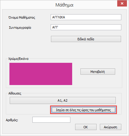 2. Ο δεύτερος τρόπος είναι να χρησιμοποιήσετε την επιλογή “Ισχύει για όλες τις ώρες του μαθήματος”.
