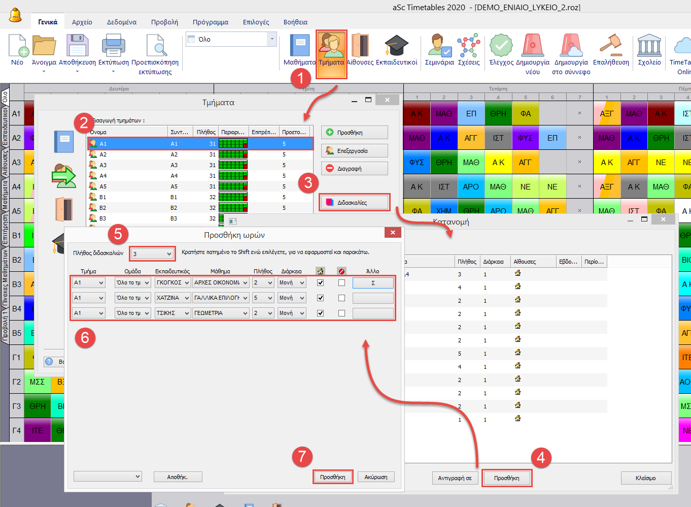 Στην περίπτωση που πολλοί εκπαιδευτικοί ή τμήματα έχουν παρόμοιες διδασκαλίες, μπορείτε να κάνετε κλικ την επιλογή Προσθήκη και να εισάγετε πολλές διδασκαλίες μαζί.
