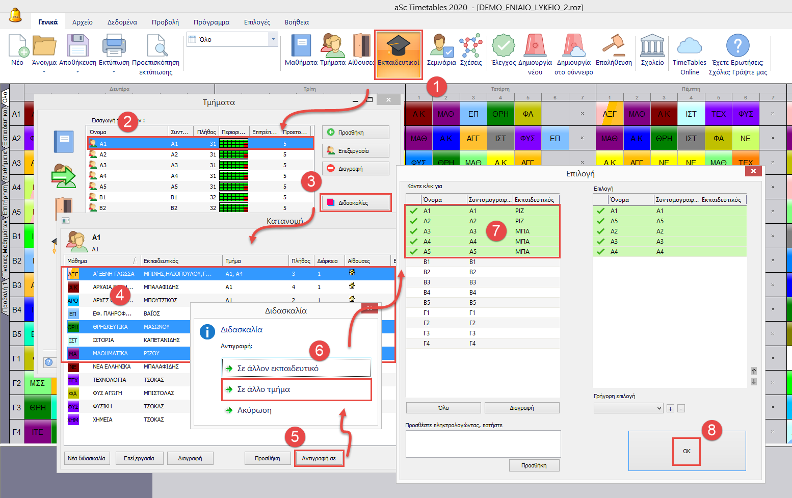 3. Το πρόγραμμα σας ρωτάει σε ποια τμήματα ή εκπαιδευτικούς θέλετε να αντιγράψετε τις διδασκαλίες.