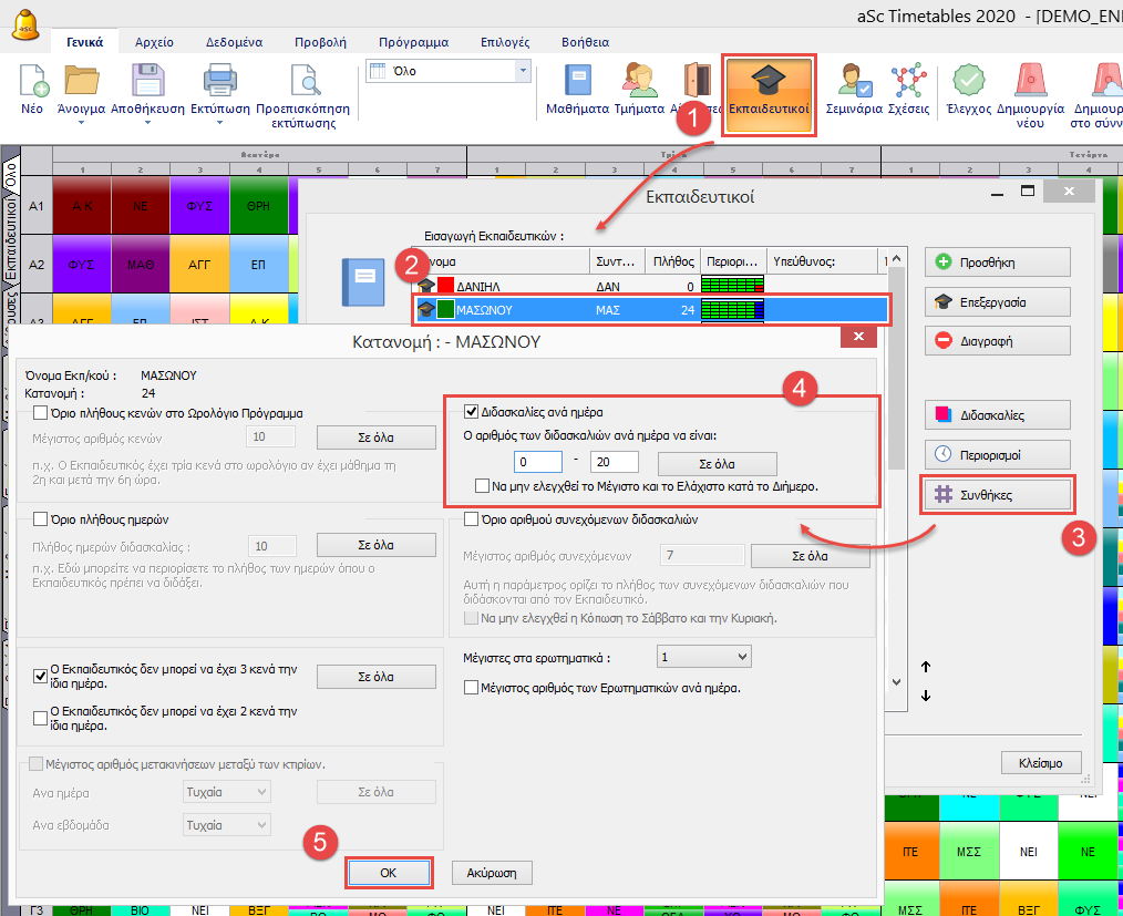 Πως θα ορίσω τον ελάχιστο και τον μέγιστο αριθμό διδασκαλιών ανά ημέρα για έναν εκπαιδευτικό;
