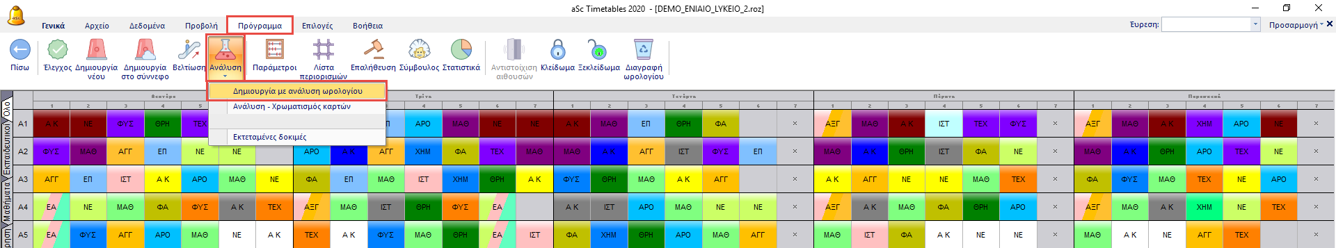 Σε μερικά ωρολόγιο μπορεί να βοηθήσει να αναγνωριστούν γρήγορα κάποια λάθη στην εισαγωγή ή μερικές κάρτες που απλά δεν μπορούν να τοποθετηθούν και πρέπει να επιλυθούν για να δημιουργηθεί ωρολόγιο.